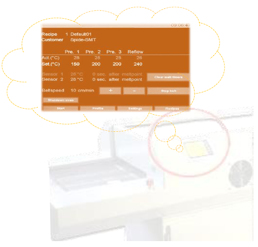 According to the process type, RK reflow select conveyor speed and direction. However, cooling location cannot be changed. This feature is good for dry process or other application, rework and so on. For detaile setting, please inform us in advance.